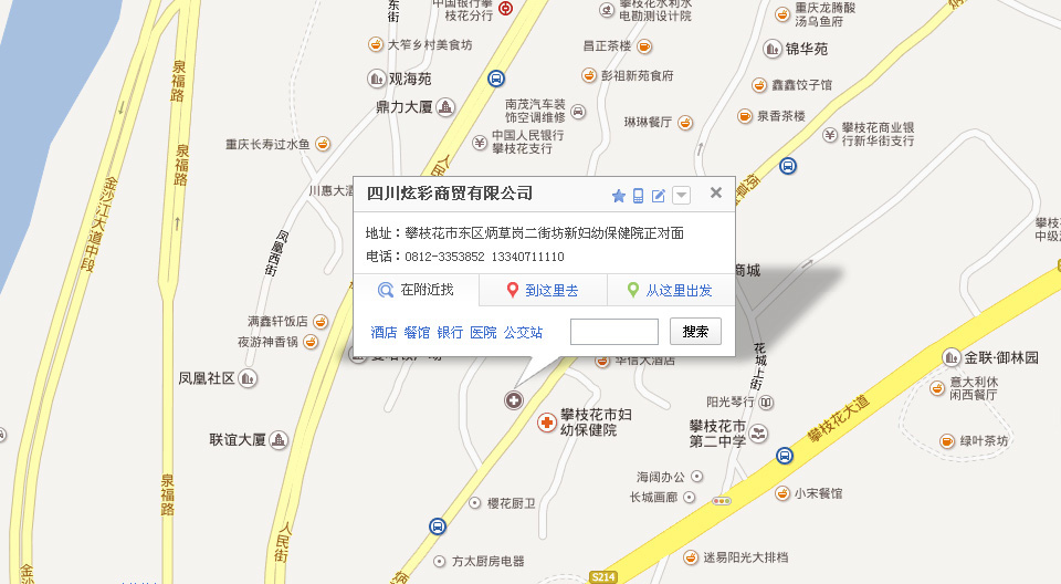 地 址:成都市金牛區(qū)花圃路1號(hào)2樓A區(qū)202號(hào)  (攀枝花)攀枝花市東區(qū)炳草崗二街坊新婦幼保健院正對(duì)面
